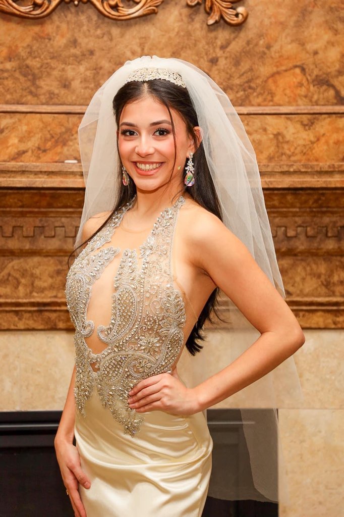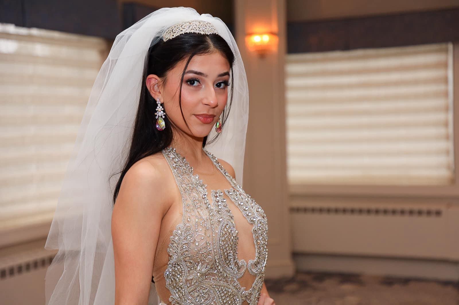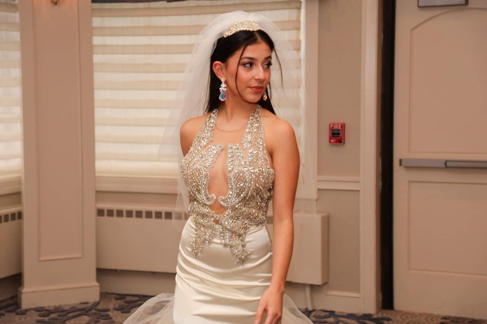 - Rhinestone bodice applique hand sewn on.