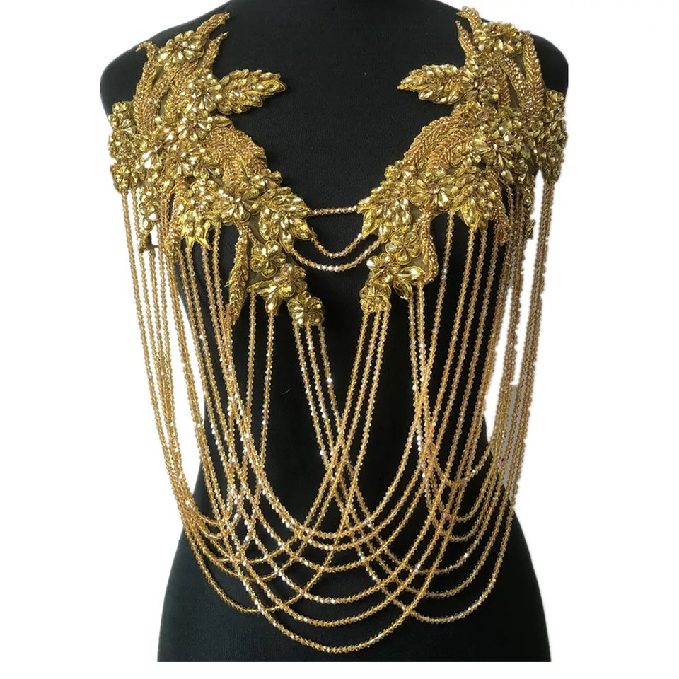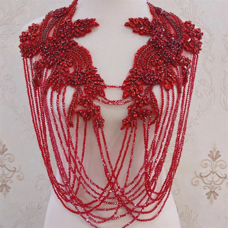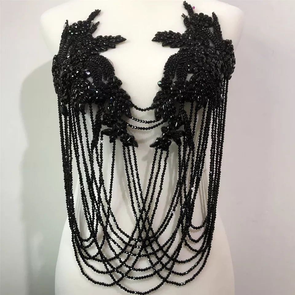- Fringed rhinestone applique